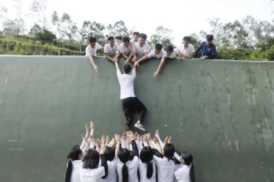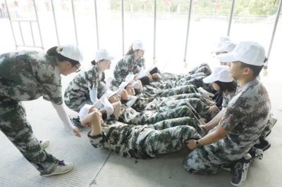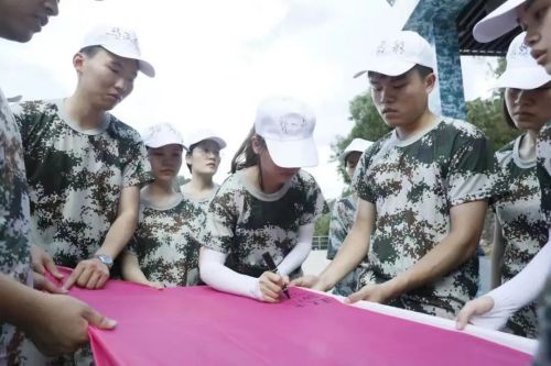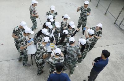 在整理好个人内务并接受军训规矩的学习之后,“正中星”们开始全心投入到为期两天的拓展训练中。