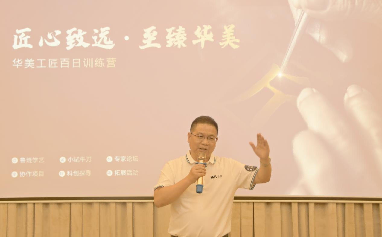 2016年的政府工作报告中,李克强总理说:“要鼓励企业开展个性化定制、柔性化生产,培育精益求精的工匠精神”。工匠精神是一种职业精神,它是职业道德、职业能力、职业品质的体现,是从业者的一种职业价值取向和行为表现。为大力弘扬和传播工匠精神,激励华美员工养成精益求精、追求卓越的工匠品质,2021年7月22日,华美科技工匠百日训练营启动会在华美一楼培训室召开,华美科技领导班子、各部门一级负责人、生产、工艺、质量、精益、设备等人员参加了本次启动会。