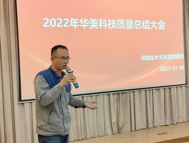 2023年1月6日,华美科技召开年度质量总结大会,大会对华美科技2022全年的质量表现进行总结,同时根据内外部反馈,进一步明确了2023年的质量目标、质量方针及具体管控举措。