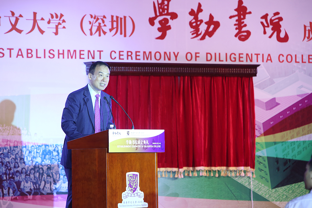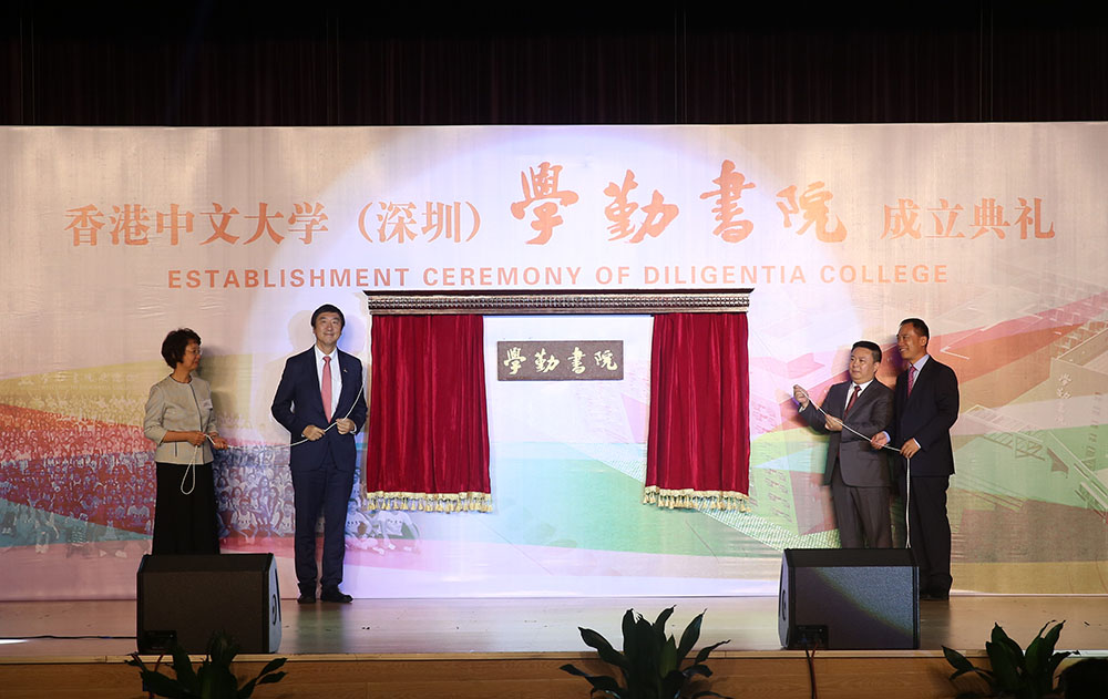 ”致辞结束以后,书院创办人邓学勤总裁、港中大(深圳)理事会沈祖尧主席、校长徐扬生教授、书院院长顾阳教授一同完成了揭幕仪式,至此宣告了香港中文大学(深圳)学勤书院正式成立。 我们有理由相信,在香港中文大学(深圳)和深圳市正中公益慈善基金会共同努力下,学勤书院会越办越好,也期待未来让教育反刍城市发展,让城市的进程提升教育的未来!