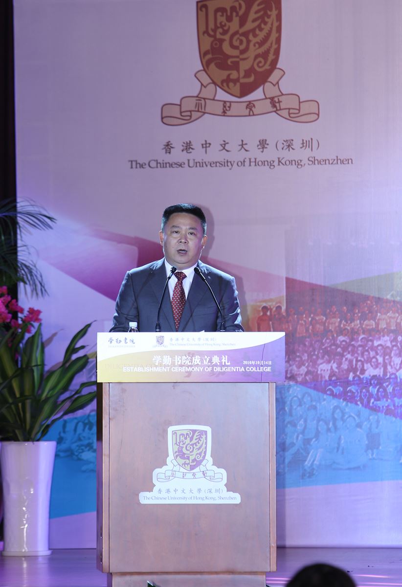 典礼期间,校长徐扬生教授和学勤书院创办人邓学勤总裁分别进行了致辞。徐杨生校长在致辞中对邓学勤总裁及其家人以及深圳市正中公益慈善基金会的全体同仁“兼济天下,回馈社会”的赤子情怀表示感谢,并借助邓学勤总裁的奋斗历程,表达了对学勤书院学子的期许:“我想鼓励全体同学立志把深圳这座城市最值得骄傲的‘创业者精神’和‘开拓者精神’传承下去。如果说邓学勤先生是深圳第一代的创业家,开拓者,实干家。那么,我希望今后学勤书院的学子们能够以邓学勤先生为榜样,成为第二代、以及第三代的创业者、开拓者和实干者,并且始终以“开放包容,开拓进取”的姿态走在时代的前列。